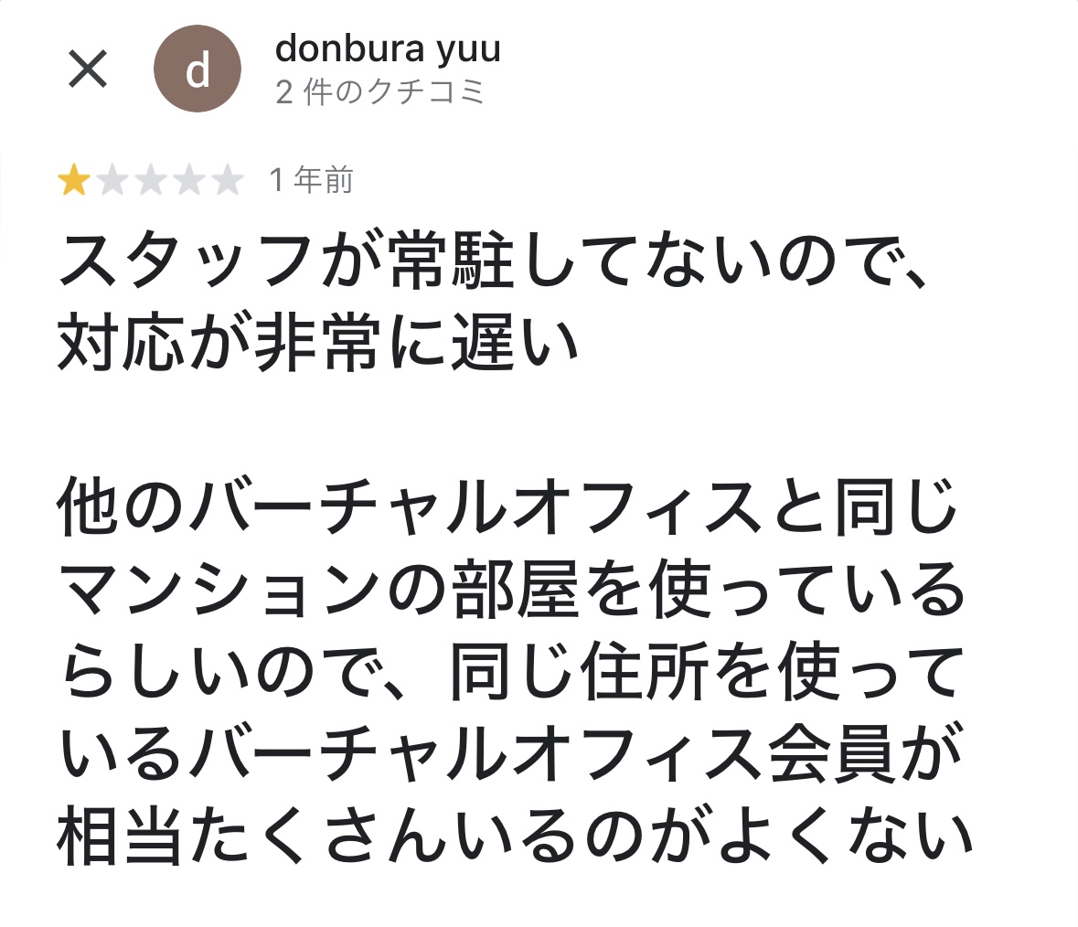 また「同じ住所の利用者が沢山いる」というのはバーチャルオフィスを利用する場合どこでも起こる事ですので、仕方がない部分かなという印象です。